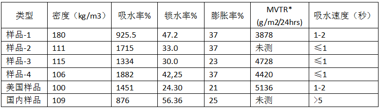 *MVTR測試指標的物理意義:泡沫片材的單位時間面積的透水率(水蒸氣的透過能力),現(xiàn)在歐洲和美國的標準指標不一致,方法也不一樣,無法進行換算,只能拿來樣品用同一方法測試才能進行比較,但唯一的吸水速度指標方法基本一致。