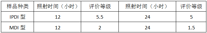 從上表的測試結果就能看出脂肪族異氰酸酯泡沫的耐黃變性能是比較優(yōu)秀的。