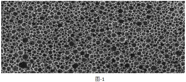 這里需要說明的是微孔泡沫不是指的微孔PU彈性體(如鞋底、鞋墊、高鐵墊片、輪胎、汽車彈簧之類的泡沫),而是一種柔軟的高密度的聚氨酯泡沫片材,是屬于特種聚氨酯軟泡,比較典型的泡孔結構如圖-1。
