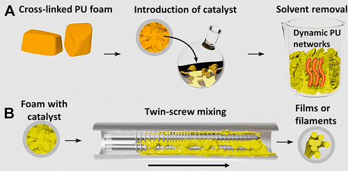 為了擴(kuò)大回收利用的可能性,來自明尼蘇達(dá)大學(xué)和伊利諾斯州西北大學(xué)的科學(xué)家們設(shè)計了一種工藝,他們首先將聚氨酯泡沫廢料跟催化劑溶液混合,這使得泡沫具有延展性。