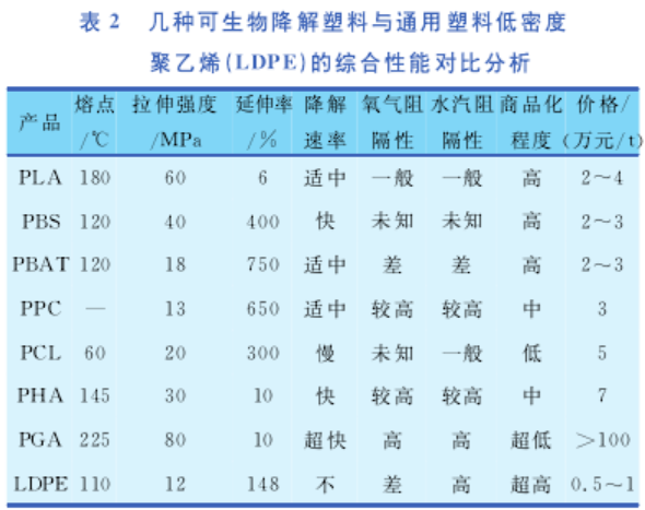幾種可生物降解塑料的性能與應(yīng)用比較研究